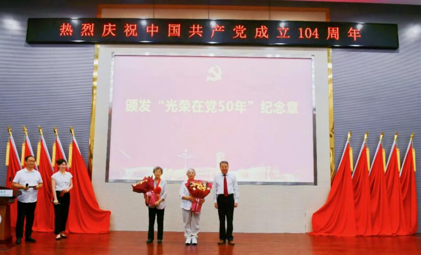 为庆祝中国共产党成立104周年,表彰先进典型,激励广大党员干部师生,7月1日下午,学校召开庆祝中国共产党成立104周年暨“七一”表彰大会。校领导班子成员、第一、第二附属医院领导班子成员、校党委委员、各二级党组织书记、“光荣在党50年”老同志代表、“两优一先”获奖人员、党员先锋站负责人以及师生党员代表参会。大会由校党委副书记张华泉同志主持。