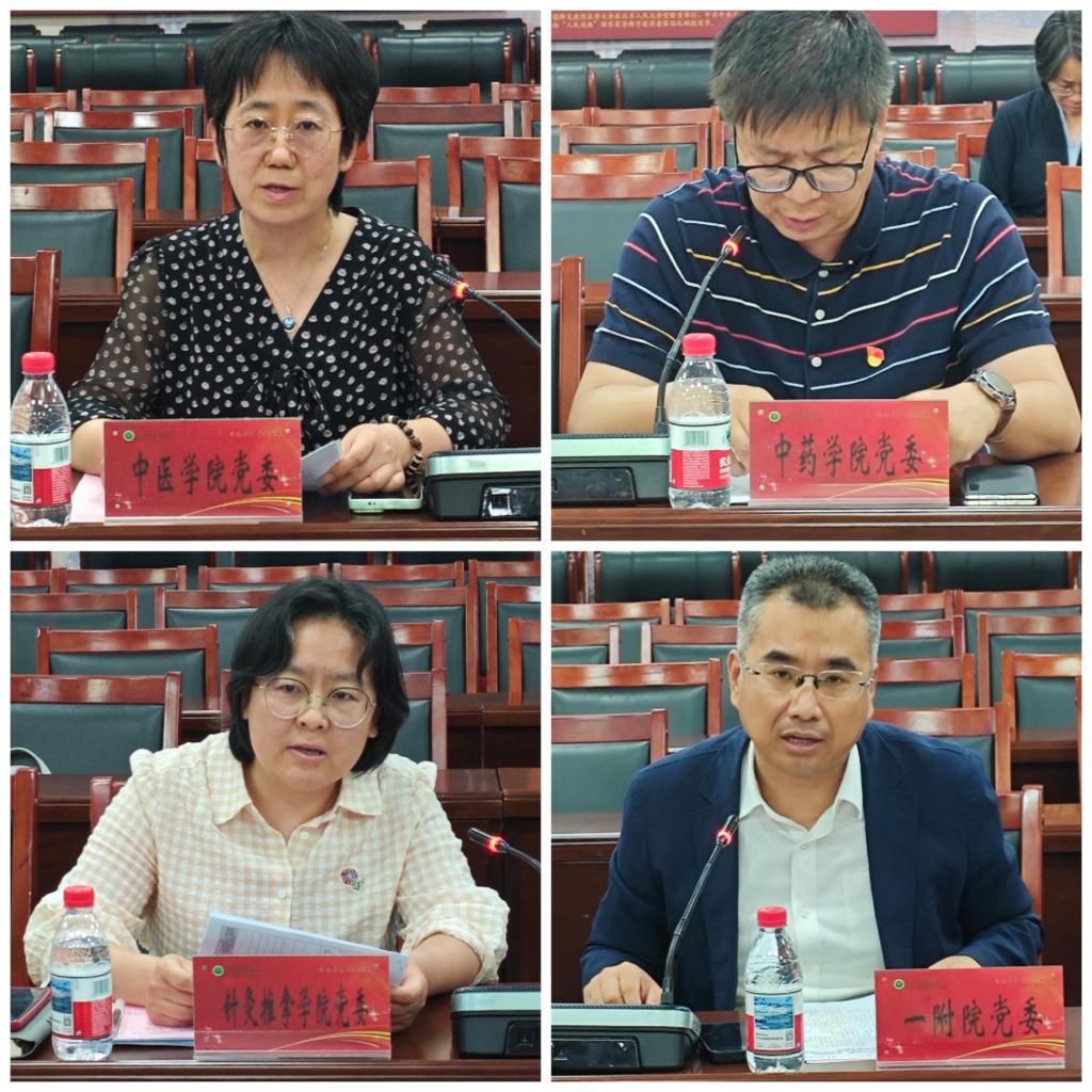 会上,工作专班汇报了学校开展学习教育的进展情况,中医学院、中药学院、针灸推拿学院和一附院党委主要负责同志就本单位开展学习教育情况进行交流发言。
